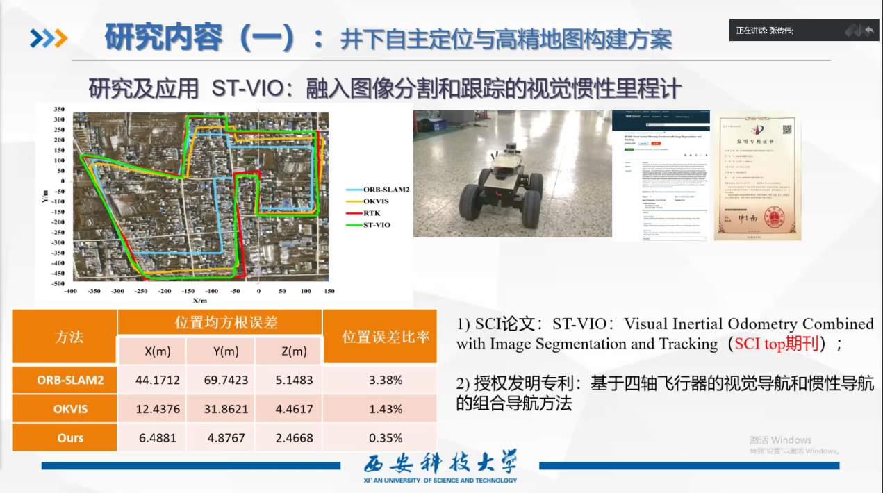 报告会由机械学科基本情况、学科初心使命、科研继承创新、科研未来规划四个方面组成。张传伟首先从西安科技大学100余年的办学历史出发,深入浅出地介绍了机械学科从矿山机械及运输教研组到现在机械工程学院的发展历史。随后介绍了西安科技大学机械工程学院现有矿用智能车辆、煤矿机电设备智能检测与控制、现代机械设计方法及应用、增材制造技术、煤矿机电设备健康维护与管理等研究方向的科研进展和研究成果。然后,重点介绍了作为团队负责人的矿用智能车辆创新团队20多年来的发展历程,以及近年来所开展的研究内容和取得的代表性科研成果。最后,以“胡杨精神”作总结,象征机械学科在发展历程中所显示出的顽强的生命力。会后,与会师生与张传伟就多信息融合中的信息冲突等方面进行了深入交流,就目前研究中的难点问题开展了讨论。