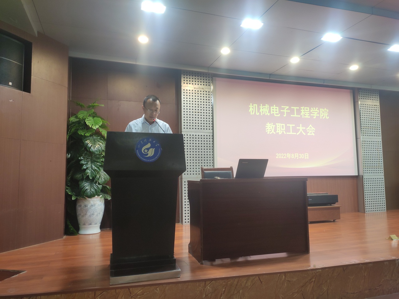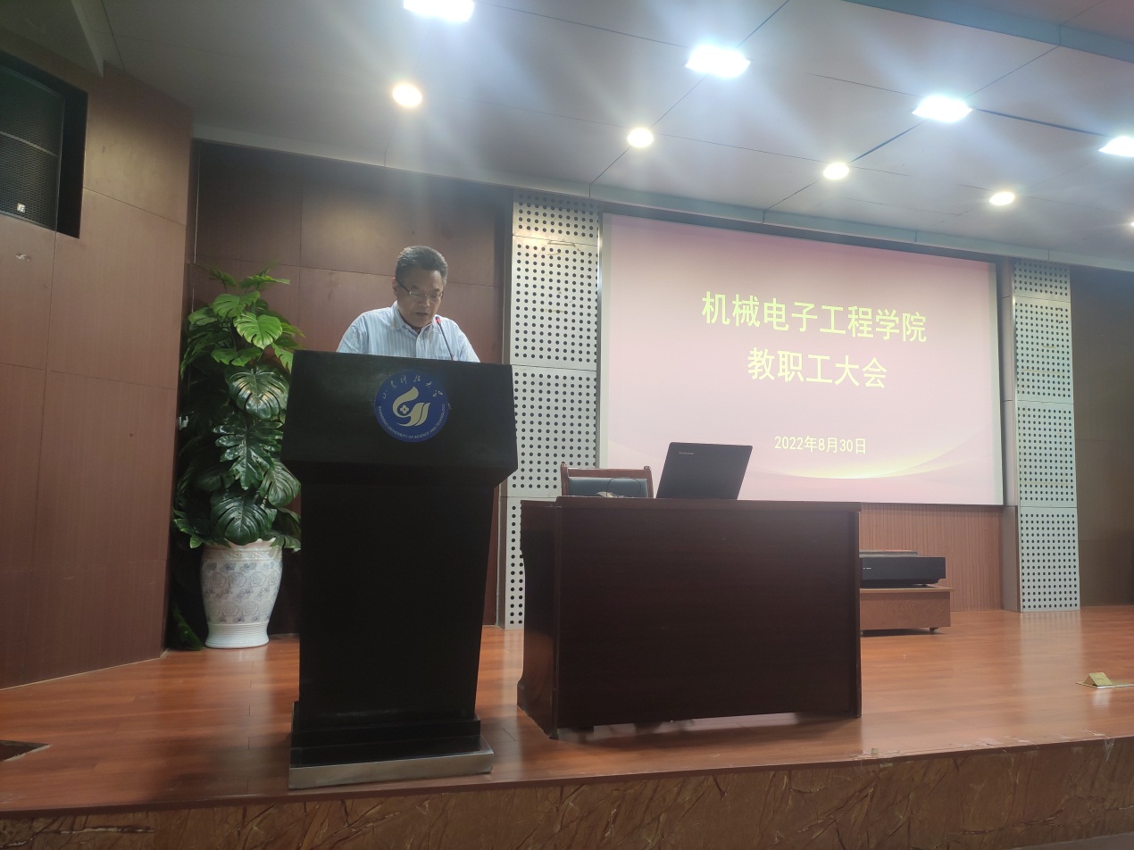 李双立书记首先对学院专职组织员和新入职教职工进行了介绍,随后传达了学校干部工作会议有关精神,并结合实际,指出了学院发展中存在的问题和不足,要求老师们要有创新理念、超前思维、开放共享理念、安全理念,共同促进学院更快更好地发展。