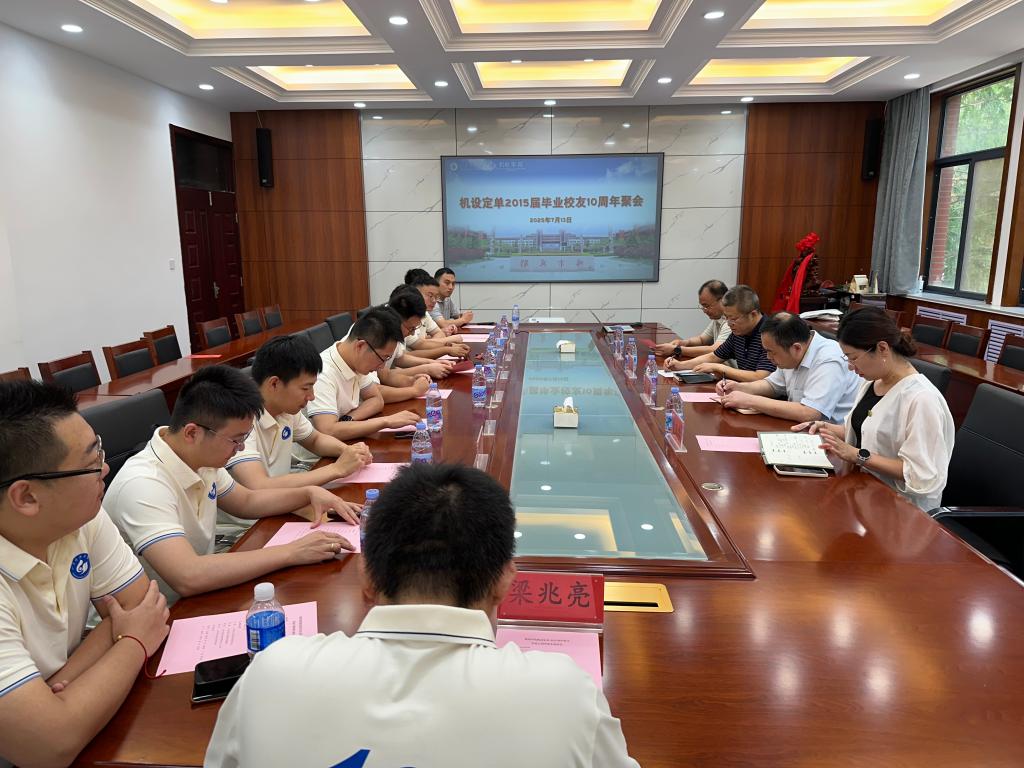 7月13日,机设定单2011级1班校友在hth华体育官网209会议室举办毕业10周年聚会。hth华体育官网党委书记陈猛、副院长张鑫、学工办主任樊玉华、机电系教师高峰参加座谈会,与校友们齐聚一堂,共叙往昔岁月,畅谈未来发展。