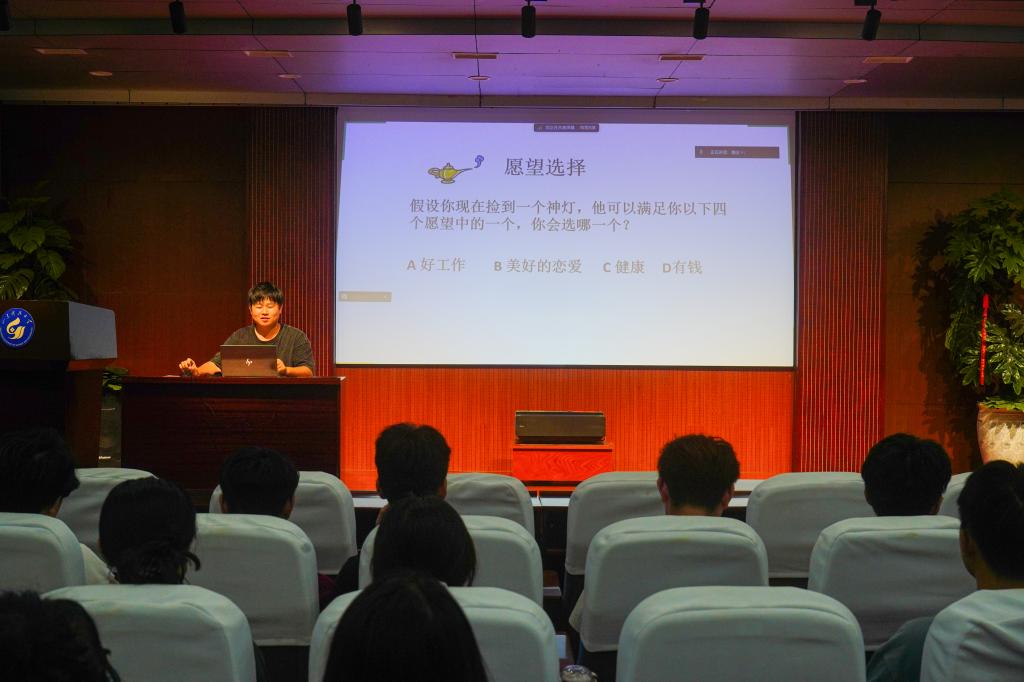 “心理健康教育”专题讲座由辅导员傅广程主讲,他以“健康”的定义为起点,深入浅出地向新生阐释心理健康的重要性,详细介绍心理健康的标准,分享管理心理健康、缓解心理压力的实用方法。傅广程的讲解贴合新生入学后可能面临的适应难题,有效帮助新生快速适应研究生阶段的生活与学习节奏,减少适应期的心理内耗,进一步增强了新生的情绪稳定性与抗压能力,为其身心健康发展保驾护航。