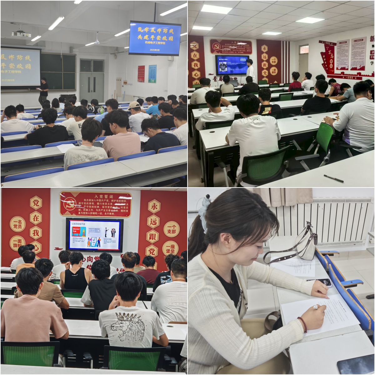师生志愿者深入学生宿舍,从诈骗类型、诈骗手段、防诈技巧等方面对学生开展一对一宣讲,并耐心解答学生疑问,让反诈知识深入每一位学生心中。此外,在学生公寓设置“反诈能量站”,张贴“陌生链接不乱点,可疑电话莫轻信”等创意标语,,提醒学生提高警惕,避免受骗,引导学生争做反诈小卫士。