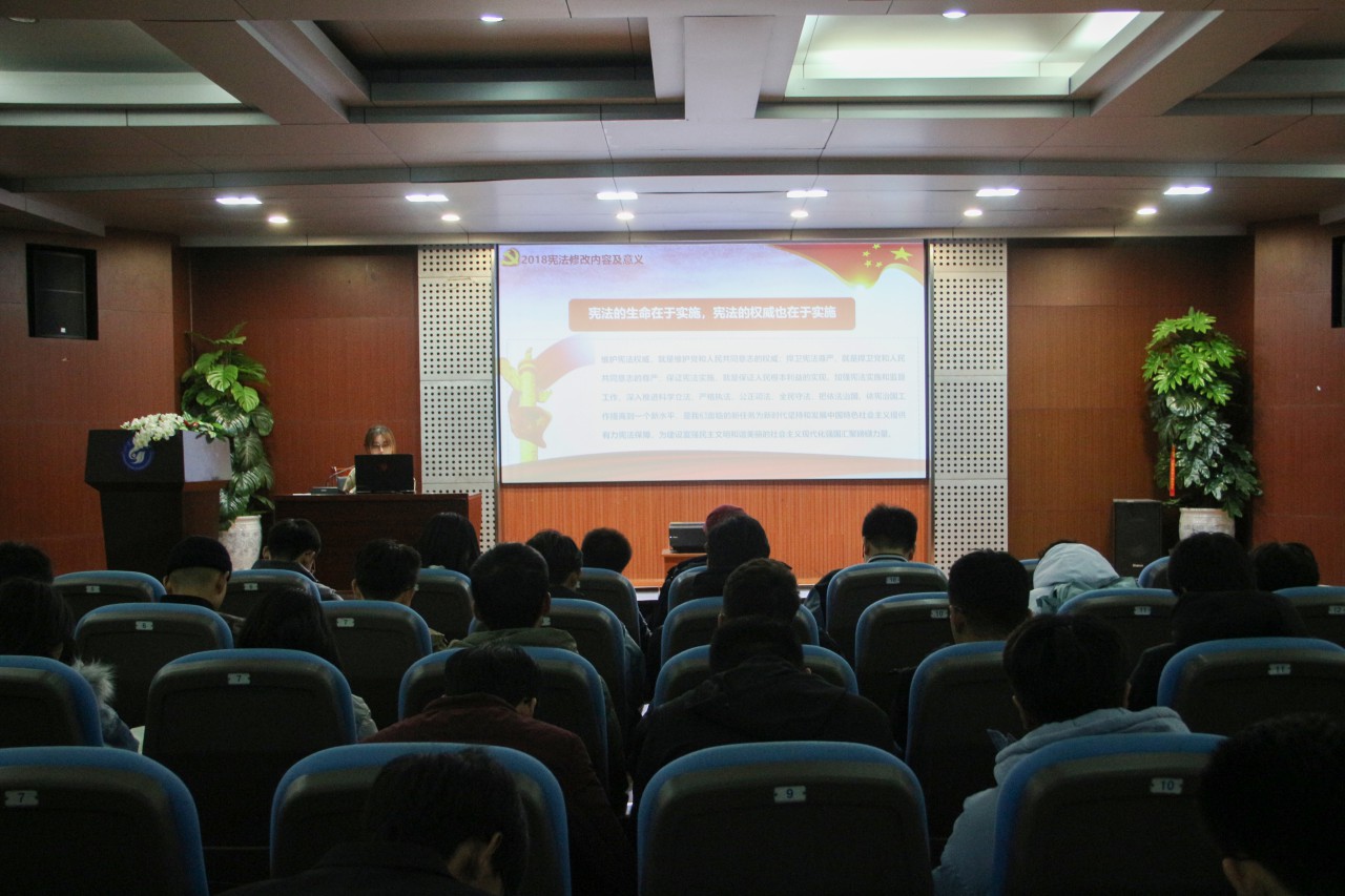讲座上,成宇坤从《中华人民共和国宪法》、国家宪法日暨全国法制宣传日、国家宪法日的设立和设立意义、2018年宪法修改内容及意义和弘扬宪法精神、履行宪法使命五个方面向与会同学介绍了宪法日的日期、宪法的由来等基本知识,着重讲述了宪法是国家的根本大法的性质和作用,明确了宪法的地位,并结合党的十九大精神详细讲解了宪法的修改和意义,鼓励同学们积极弘扬宪法精神,履行宪法使命。最后,成宇坤就同学们提出的关于宪法的问题进行详细的分析和解答。