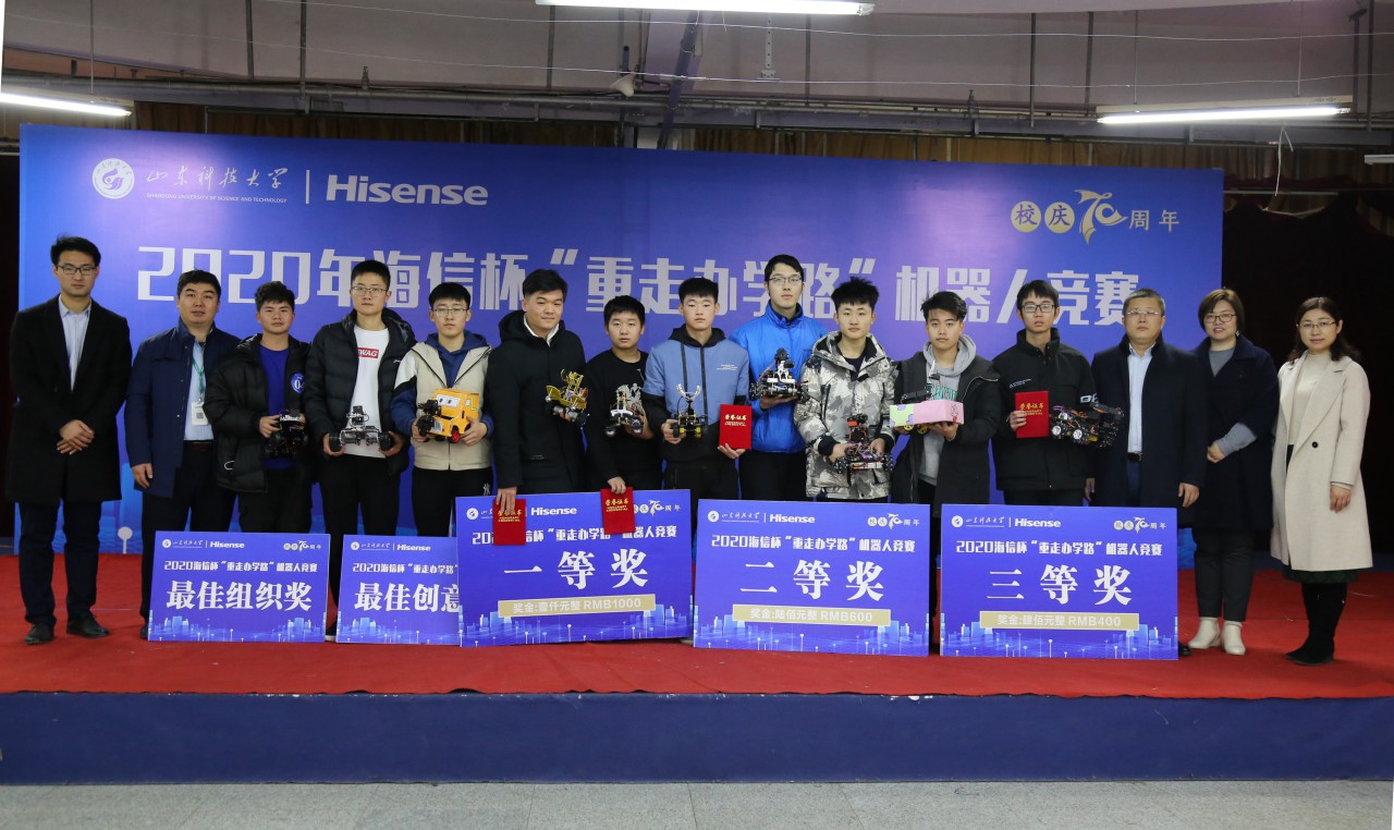点击:为增强大学生科技实践能力,营造了解校史、爱校荣校的校庆氛围,12月20日上午,由共青团hth华体育官网委员会主办、hth华体育官网承办的海信杯“重走办学路”机器人竞赛,在大学生活动中心一楼报告厅隆重举办。海信视像科技股份有限公司制造中心副总经理安玉江一行、校团委副书记马鹤、hth华体育官网党委副书记陈猛出席比赛现场,学院团委书记樊玉华主持开幕式。