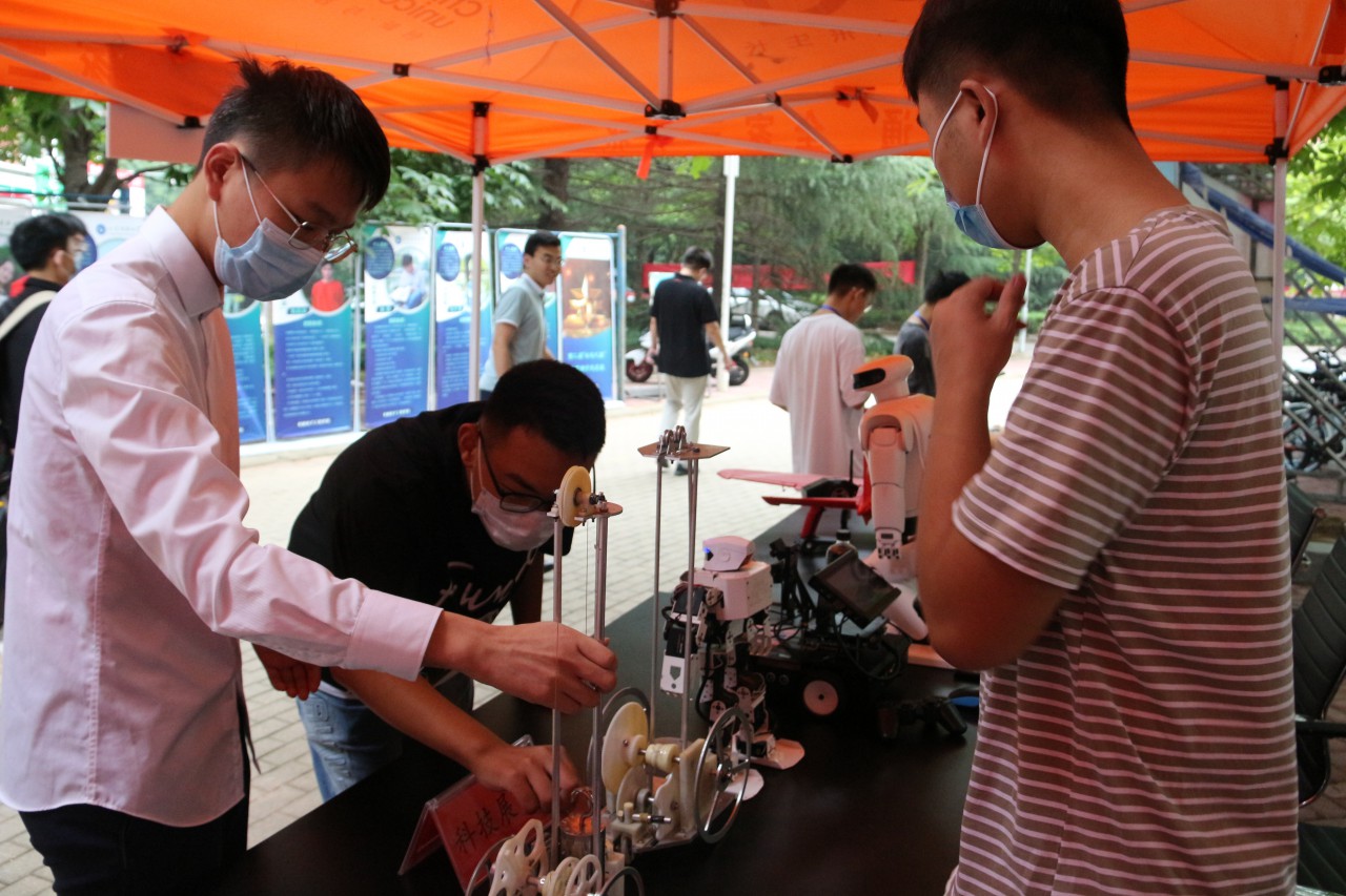 在迎新点,hth华体育官网设置了电子显示屏,展示近年来学生培养工作中的科技创新、社会实践、文艺体育等各项突出成绩;科技展示处,由hth华体育官网学子自主研发的机器人吸引了众多新生们的目光,它们向新生们展示自己的“技能”:后空翻,跳舞,仰卧起坐……充分展现了hth华体育官网的科创精神;优秀学子展示牌上陈列了近年来在学习、创新创业、社会实践等众多优秀机电学子的事迹介绍,为新生树立了发展榜样。