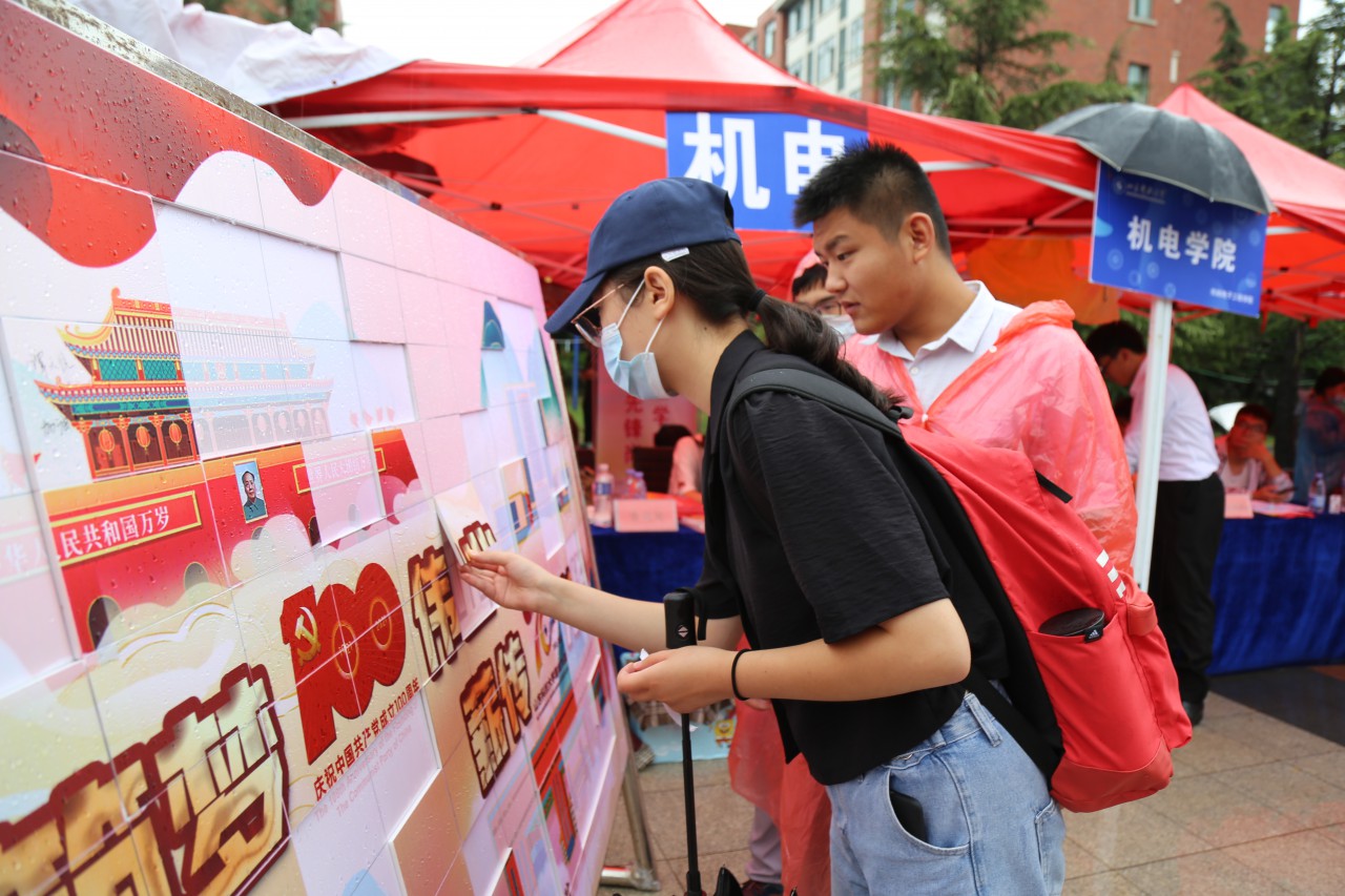 同时,hth华体育官网的迎新方式也是创意满满:用拍立得为新生拍照,并把照片按照“100”“70”的图样粘贴,热烈庆祝建党100周年、建校70周年;由新生每人手持一块碎片,拼起“筑梦100伟业 薪传70芳华”的完整图案,既有浓浓的爱国爱校教育意味,也象征着hth华体育官网是一个大家庭,每一位学子缺一不可。