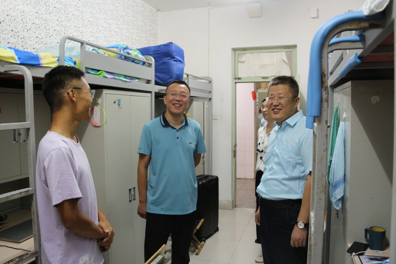学院领导十分关心新生返校服务工作,hth华体育官网党委书记韩宝坤、院长张强、党委副书记陈猛来到迎新点检查迎新工作,走入宿舍亲切问候学子。