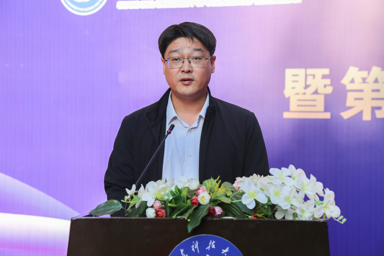 韩宝坤致开幕词,介绍了hth华体育官网2021年度科创成果展和第二届“寻找合伙人”大学生科创项目双选会的开展情况。