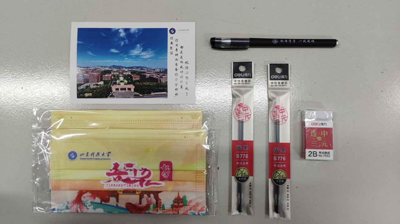 考研爱心加油包中包含着学院各方面的关心和支持,精心挑选的“连中三元”文具、“一战成研”考研“锦鲤笔”、“鱼跃龙门”机电专属口罩、考研祝福手写明信片,每一种定制、每个字的书写、一句句暖心祝福,都寄托着学院全体师生对考研学子的深情祝福,通过面对面传递的“考研祝福大礼包”为考研学子们加油鼓劲!