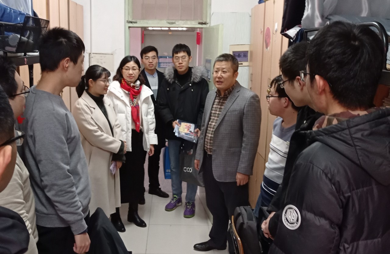 点击:12月14日上午,hth华体育官网党委副书记、副院长陈猛,学工办主任樊玉华,2018级辅导员祝月盈、孟凡宝、苗成旭走进2022届考研同学宿舍,为正在努力备考冲刺的考研学子送去温暖与祝福。