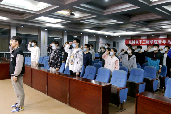 活动伊始,杨忠源带领全体成员齐唱团歌,在激昂的歌声中进一步明确了新时代青年的责任与担当。接着,全体成员共同观看共青团中央五四微电影《重逢》,了解影片中讲述的朴实奶奶与孙子肖思远烈士的故事,感受浓浓的亲情以及边防战士深厚的爱国情怀,产生了“大家”与“小家”的共鸣,让在场成员感受到青年一代的血性担当和拳拳爱国心。最后,杨忠源带领全体成员重温入团誓词,铿锵有力、慷慨激昂的誓词展现出成员们立志报国、勇担重任的决心与信念。