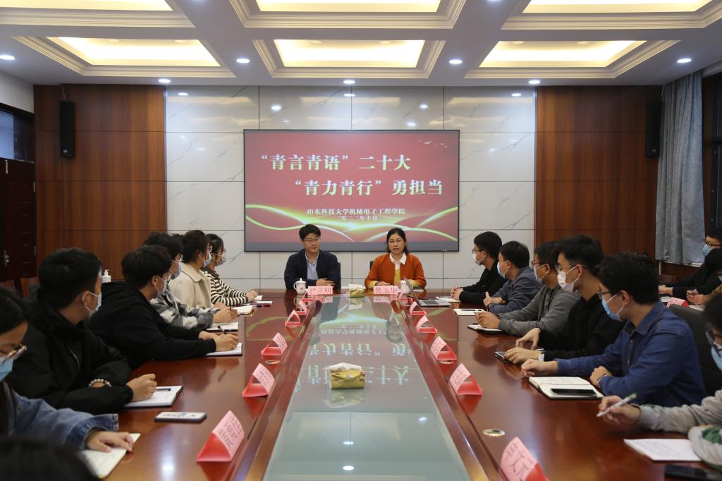 点击:为深入学习宣传贯彻党的二十大精神,引导广大青年牢记习近平总书记对青年的殷切嘱托,激励青年学生勇担时代使命,10月26日下午,hth华体育官网在J8-209会议室举办了“‘青言青语’二十大、‘青力青行’勇担当”主题座谈会。校团委书记尹立明应邀出席座谈会,小平科技创新团队和梦耀中华服务宣讲团成员代表参加座谈。座谈会由hth华体育官网团委书记樊玉华主持。