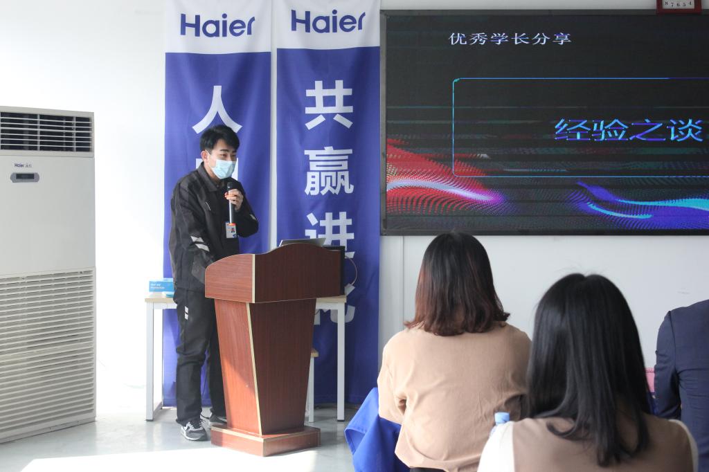 仪式上,海尔智家黄岛园区人力资源经理王欣对PEDP项目进行了简要说明,上一届优秀学生代表分享了自身成长经验,青岛海尔电子塑胶有限公司人力资源经理孙海明作为海尔小微代表对新进成员表示欢迎并给予工作希望,hth华体育官网hth华体育官网副书记陈猛对海尔智家为学生提供的多元化成长成才平台表示感谢,并给予项目成员要谨记“惟真求新”校训,发扬“坚韧不拔、发奋图强”科大精神,自觉遵守企业各项规章制度,在实习实践中取得优异成绩。