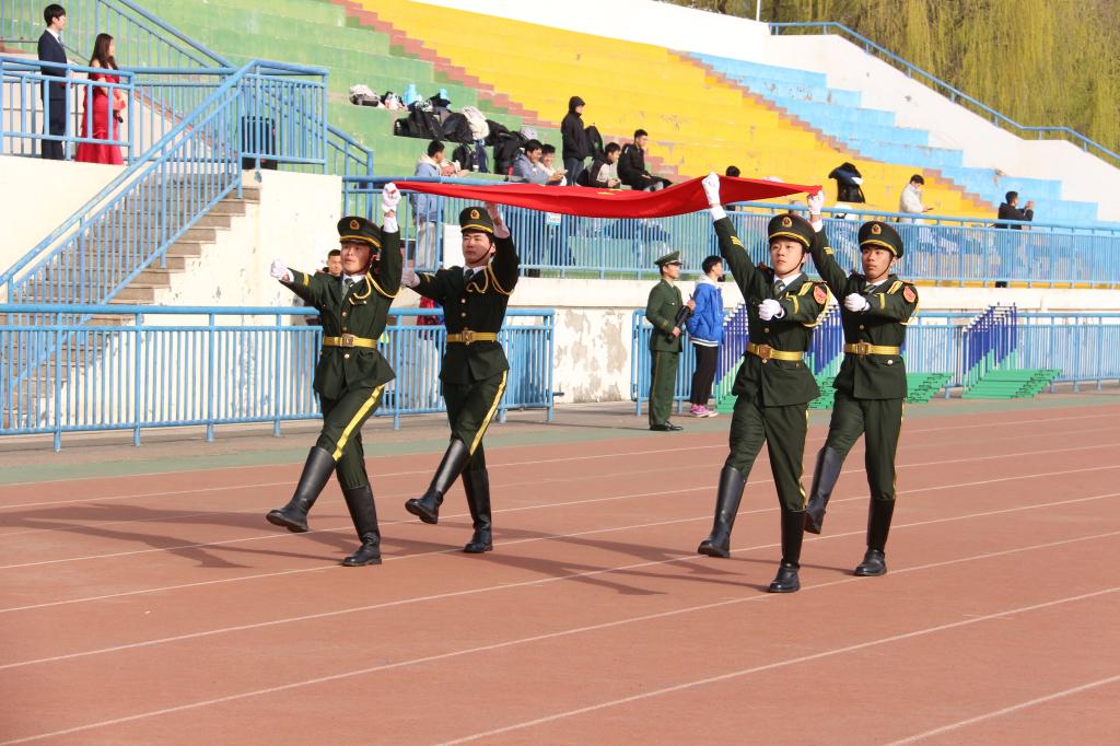 操场上,国旗班英姿飒爽,迈着整齐而又坚定的步伐护卫国旗入场,花束队、彩旗队神采奕奕,各班级同学朝气蓬勃,步伐整齐,一齐走过主席台。陈猛致开幕词,运动员代表杨浩南、裁判员代表刘一鸣发言,郑重宣誓。杨治宽宣布运动会开幕。