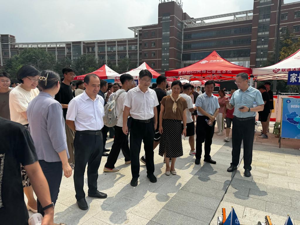 在迎新期间,校党委书记罗公利、校长曾庆田以及相关部门领导来到学院迎新点,学院领导汇报迎新工作进展情况,并就学院“猜灯谜”“飞花令”“科技展示处”等特色迎新项目进行介绍。学校领导高度肯定了hth华体育官网近年来在学生科创方面取得的成就,并对学院新生寄予了更高的期待。