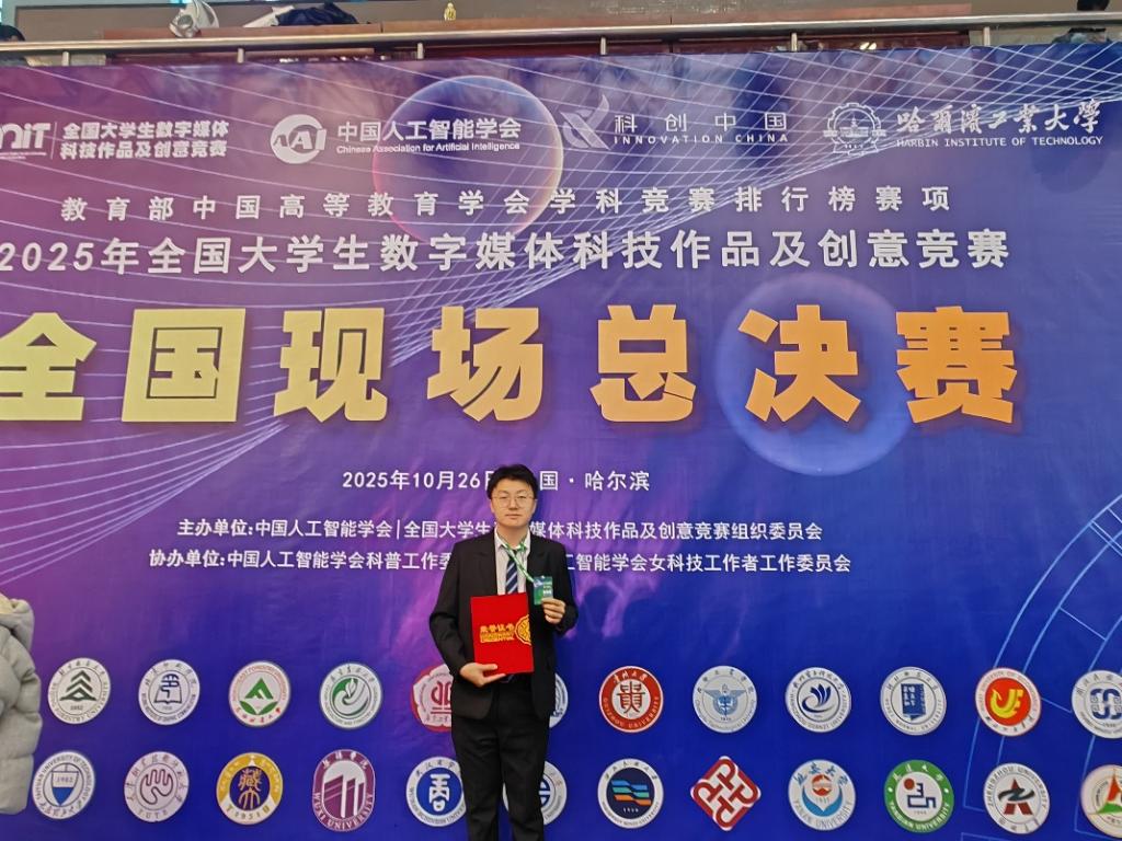 点击:近日,第十三届全国大学生数字媒体科技作品及创意竞赛在哈尔滨工业大学圆满落幕,经过激烈角逐,hth华体育官网参赛团队斩获国赛一等奖1项、国赛二等奖2项、国赛三等奖22项,其中,由2024级研究生李江龙等人完成的项目《“擎云智行”——面向智能电动叉车的集群云控调度系统》(指导教师:杨扬)斩获国赛一等奖。