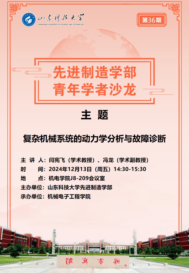 先进制造学部青年学者沙龙 复杂机械系统的动力学分析与故障诊断