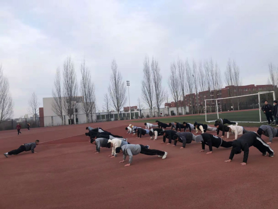 “我来教大家打军体拳!大家跟我做!”几天后,退伍老兵们发现部分学生因常待宿舍无精打采,为了增强同学们的身体素质,提高免疫力,严利君结合在部队学习到的科学训练方法组织同学们在高地操场进行军体拳、俯卧撑、深蹲、慢跑等一系列的体育锻炼。吴彪、袁龙则在操场上为同学们讲解示范叠军被,引导同学们做好内务整理与统一,确保宿舍环境清洁规整,帮助同学们树立正确的学习和生活态度。张鹏等退伍老兵积极响应国防先锋营的志愿者活动,脱下迷彩服,换上防疫服,在核酸检测现场维持现场秩序,保证检测工作的有序进行。